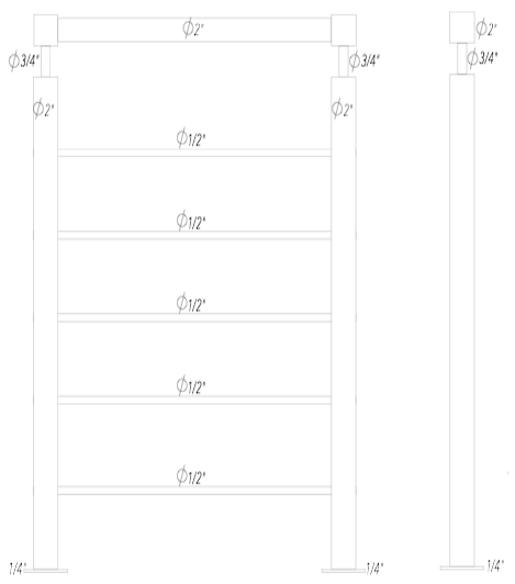 - 5 Resguardos horizontales en redondo macizo de 1/2" soldados a postes