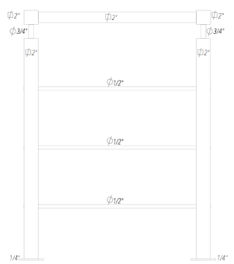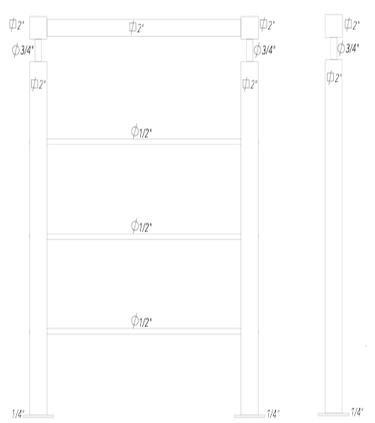 - Resguardos horizontales en redondo macizo de 1/2" soldados a postes