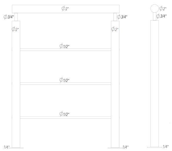 3 Resguardos horizontales en redondo macizo de 1/2" soldados a postes