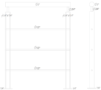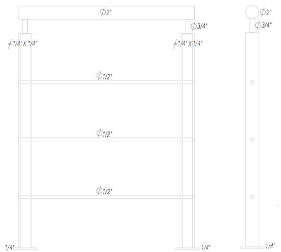 - 3 Resguardos horizontales en redondo macizo de 1/2" soldados a postes